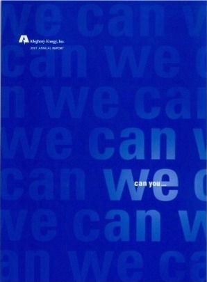 Download This Year's Entry FormPublication Highlights: | Company Name: | Allegheny Energy | | Employee Base: | 1,000 - 10,000 | | Annual Revenue: | More than $1 Billion | | Sector/Industry: | Services and Utilities | | | | | Judging Results: | | | First Impression: | | | Report Cover: | | | Letter to Shareholders: | | | Report Narrative: | | | Report Financials: | | | Artwork: | | | Readability: | | | Creativity: | | | Clarity: | | | Info Accessibility: | | | Total Score: | |
