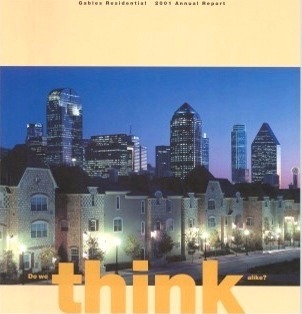 Download This Year's Entry FormPublication Highlights: | Company Name: | Gables Residential | | Employee Base: | 1,000 - 10,000 | | Annual Revenue: | $100 - $500 Million | | Sector/Industry: | Services and Utilities | | | | | Judging Results: | | | First Impression: | | | Report Cover: | | | Letter to Shareholders: | | | Report Narrative: | | | Report Financials: | | | Artwork: | | | Readability: | | | Creativity: | | | Clarity: | | | Info Accessibility: | | | Total Score: | |