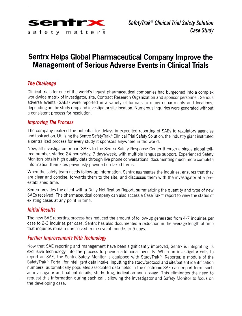 Project: Sentrx SafetyTrak® Solutions Case Study Series
