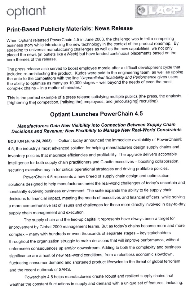 Publicity Materials Highlights: