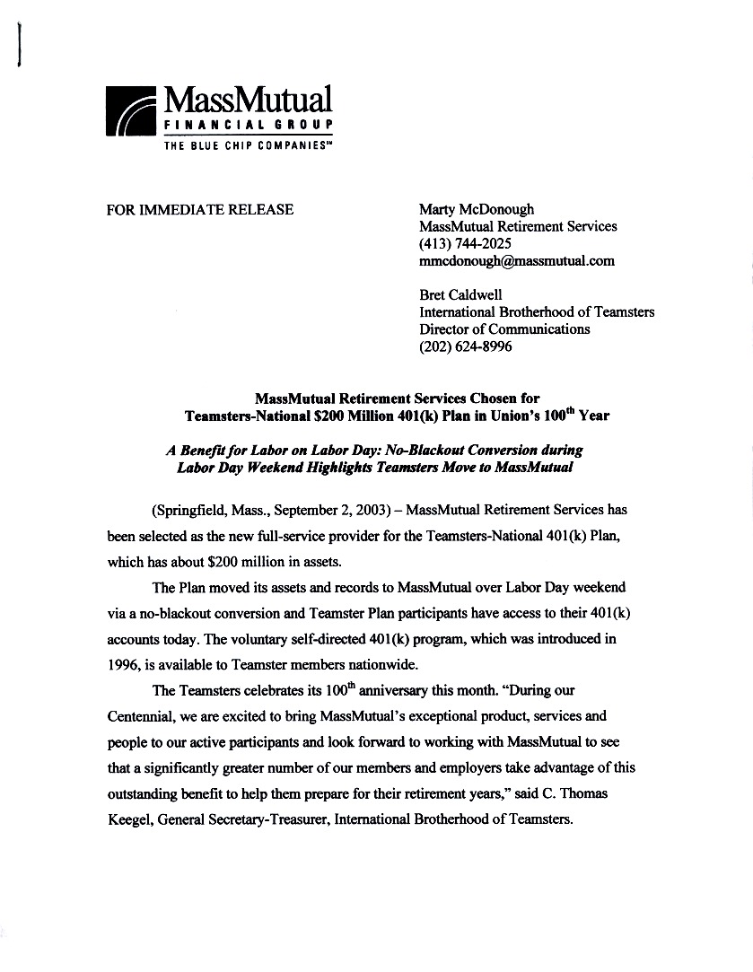 Project: Teamsters Choose Mass Mutual Retirement Services