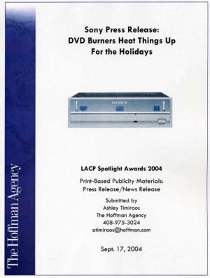 Sony Press release: DVD Burners Heat Things Up for the Holidays |