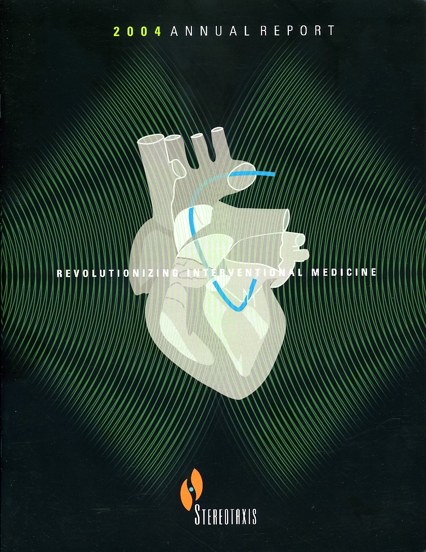Download This Year's Entry FormAnnual Report Highlights: View Competition Class Performance | Company/Agency Name: | Stereotaxis  / Obata Design, Inc. | | Company/Agency Web Site: | www.stereotaxis.com / www.obatadesign.com | | Company Ticker Symbol: | STXS | | Annual Revenue: | $10 Million - $100 Million | | Employee Base: | 100 - 1,000 Employees | | Core Industry: | Equipment, Machinery & Instruments | | Award Garnered: | Honors | | | | Judging Results | | First Impression: | | | Report Cover: | | | Letter to Shareholders: | | | Report Narrative: | | | Report Financials: | | | Creativity: | | | Message Clarity: | | | Information Accessibility: | | | Total Score: | |