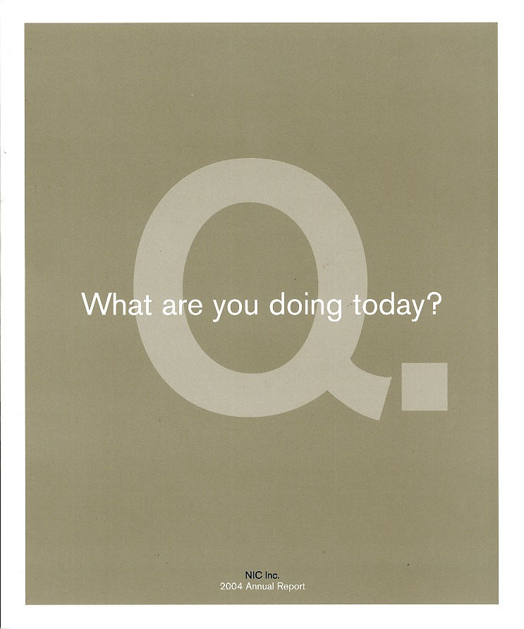 Download This Year's Entry FormAnnual Report Highlights: View Competition Class Performance | Company/Agency Name: | NIC  / modern8 | | Company/Agency Web Site: | www.nicusa.com / www.modern8.com | | Company Ticker Symbol: | EGOV | | Annual Revenue: | $10 Million - $100 Million | | Employee Base: | 100 - 1,000 Employees | | Core Industry: | Services - IT Services | | Award Garnered: | Platinum | | Top 100 Rank: | 27 | | | | Judging Results | | First Impression: | | | Report Cover: | | | Letter to Shareholders: | | | Report Narrative: | | | Report Financials: | | | Creativity: | | | Message Clarity: | | | Information Accessibility: | | | Total Score: | |
