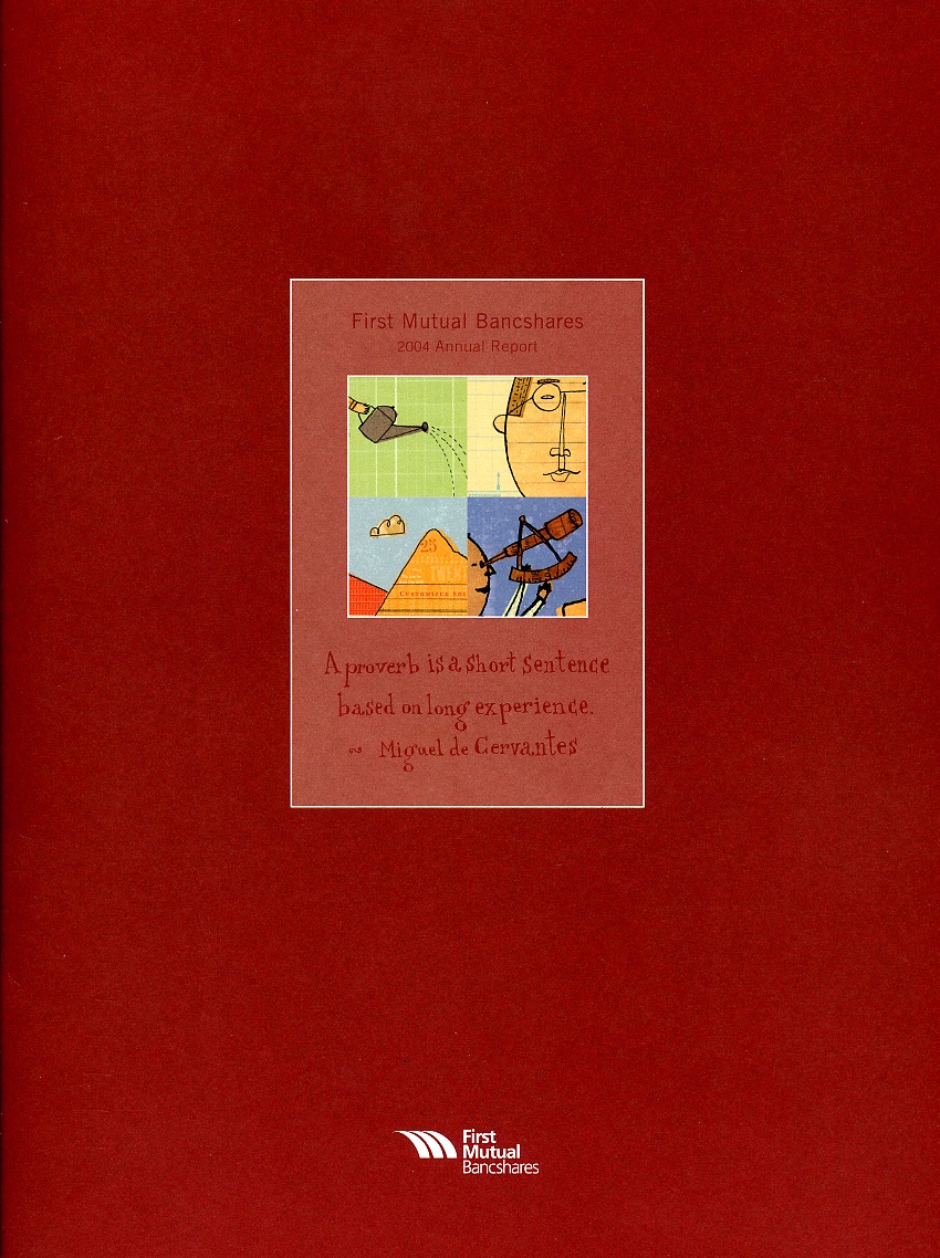 Download This Year's Entry FormAnnual Report Highlights: View Competition Class Performance | Company/Agency Name: | First Mutual Bank  / GA Creative, Inc. | | Company/Agency Web Site: | www.firstmutual.com / www.gacreative.com | | Company Ticker Symbol: | FMSB | | Annual Revenue: | $10 Million - $100 Million | | Employee Base: | 100 - 1,000 Employees | | Core Industry: | Financial - Money Center Banks, S&Ls & Related | | Award Garnered: | Honors | | | | Judging Results | | First Impression: | | | Report Cover: | | | Letter to Shareholders: | | | Report Narrative: | | | Report Financials: | | | Creativity: | | | Message Clarity: | | | Information Accessibility: | | | Total Score: | |