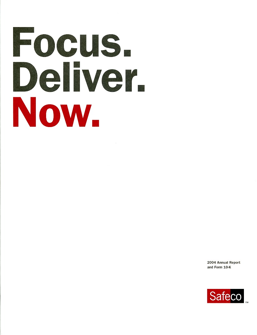 Download This Year's Entry FormAnnual Report Highlights: View Competition Class Performance | Company/Agency Name: | Safeco  / Methodologie | | Company/Agency Web Site: | www.safeco.com / www.methodologie.com | | Company Ticker Symbol: | SAFC | | Annual Revenue: | $1+ Billion | | Employee Base: | 1,000 - 10,000 Employees | | Core Industry: | Insurance & Related | | Award Garnered: | Honors | | | | Judging Results | | First Impression: | | | Report Cover: | | | Letter to Shareholders: | | | Report Narrative: | | | Report Financials: | | | Creativity: | | | Message Clarity: | | | Information Accessibility: | | | Total Score: | |