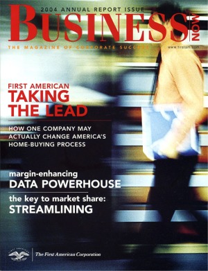 Download This Year's Entry FormAnnual Report Highlights: View Competition Class Performance | Company/Agency Name: | The First American Corporation  / Ervin Bell Advertising | | Company/Agency Web Site: | www.firstam.com / www.ervinbell.com | | Company Ticker Symbol: | FAF | | Annual Revenue: | $1+ Billion | | Employee Base: | 10,000+ Employees | | Core Industry: | Insurance & Related | | Award Garnered: | Gold | | Top 100 Rank: | 88 | | | | Judging Results | | First Impression: | | | Report Cover: | | | Letter to Shareholders: | | | Report Narrative: | | | Report Financials: | | | Creativity: | | | Message Clarity: | | | Information Accessibility: | | | Total Score: | |