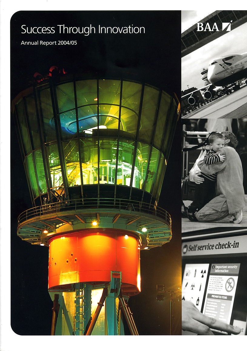 Download This Year's Entry FormAnnual Report Highlights: View Competition Class Performance | Company/Agency Name: | BAA plc  / Addison Corporate Marketing | | Company/Agency Web Site: | www.baa.com / www.addison.co.uk | | Annual Revenue: | $1+ Billion | | Employee Base: | 10,000+ Employees | | Core Industry: | Transportation | | Award Garnered: | Platinum | | Top 100 Rank: | 13 | | | | Judging Results | | First Impression: | | | Report Cover: | | | Letter to Shareholders: | | | Report Narrative: | | | Report Financials: | | | Creativity: | | | Message Clarity: | | | Information Accessibility: | | | Total Score: | |
