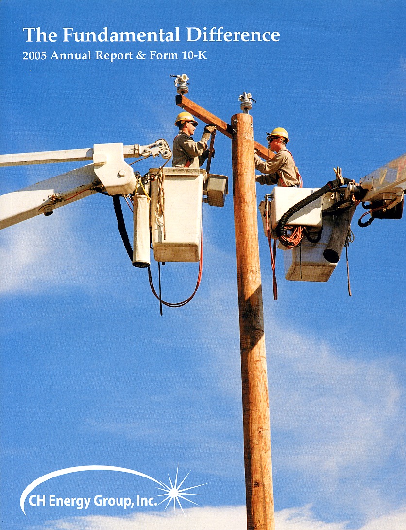 Download This Year's Entry Form Annual Report Highlights: View Competition Class Performance | Company Name: | CH Energy Group    | | Company Web Site: | www.chenergygroup.com | | Company Ticker Symbol: | CHG | | Annual Revenue: | $100 Million - $1 Billion | | Employee Base: | 100 - 1,000 Employees | | Core Industry: | Utilities - Multi/Water/Traders | Approximate Number of Pages (Narrative/Financial Percent): | 108 (11.1%/88.9%) | | Award Garnered: | Bronze | | | | Judging Results | | First Impression: | | | Report Cover: | | | Letter to Shareholders: | | | Report Narrative: | | | Report Financials: | | | Creativity: | | | Message Clarity: | | | Information Accessibility: | | | Total Score: | |