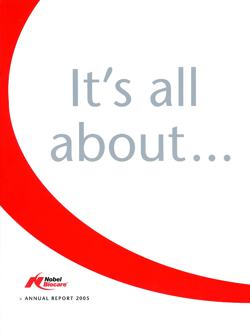 Download This Year's Entry Form Annual Report Highlights: View Competition Class Performance | Company/Agency Name: | Nobel Biocare Holding AG    / Kirchhoff Consult AG | | Company/Agency Web Site: | www.nobelbiocare.com / www.kirchhoff.de | | Annual Revenue: | $100 Million - $1 Billion | | Employee Base: | 1,000 - 10,000 Employees | | Core Industry: | Health Care - Providers & Services | Approximate Number of Pages (Narrative/Financial Percent): | 106 (39.6%/60.4%) | | Notable Feature(s): | Fold-Out Cover | | Award Garnered: | Gold | | | | Judging Results | | First Impression: | | | Report Cover: | | | Letter to Shareholders: | | | Report Narrative: | | | Report Financials: | | | Creativity: | | | Message Clarity: | | | Information Accessibility: | | | Total Score: | |