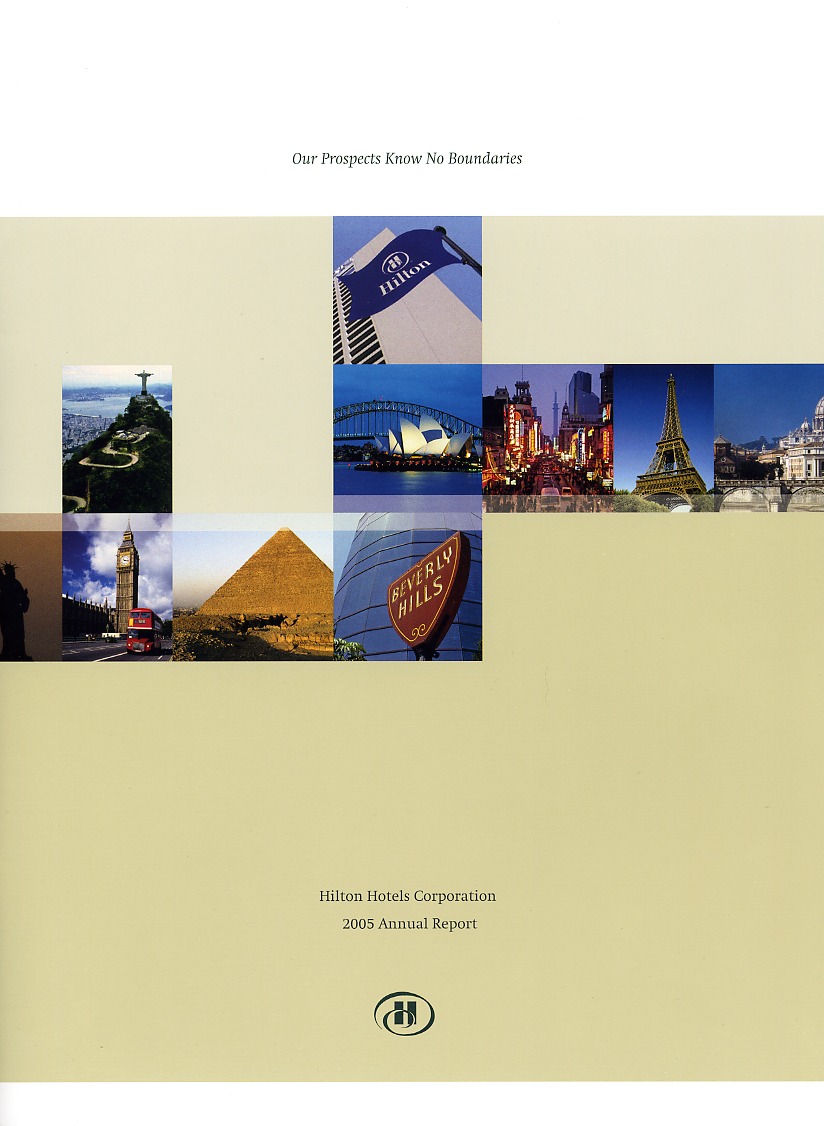 Download This Year's Entry Form Annual Report Highlights: View Competition Class Performance | Company Name: | Hilton Hotels Corp.    | | Company Web Site: | www.hiltonworldwide.com | | Company Ticker Symbol: | HLT | | Annual Revenue: | $1+ Billion | | Employee Base: | 1,000 - 10,000 Employees | | Core Industry: | Consumer Services - Hotels/Restaurants/Leisure | Approximate Number of Pages (Narrative/Financial Percent): | 122 (26.2%/73.8%) | | Award Garnered: | Bronze | | | | Judging Results | | First Impression: | | | Report Cover: | | | Letter to Shareholders: | | | Report Narrative: | | | Report Financials: | | | Creativity: | | | Message Clarity: | | | Information Accessibility: | | | Total Score: | |