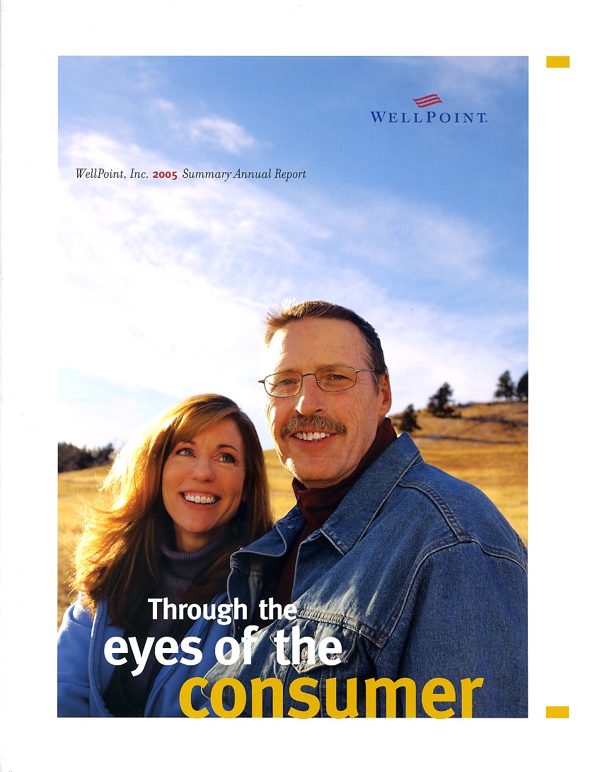 Download This Year's Entry Form Annual Report Highlights: View Competition Class Performance | Company/Agency Name: | WellPoint Inc.    / ProWolfe Partners | | Company/Agency Web Site: | www.wellpoint.com / www.prowolfe.com | | Company Ticker Symbol: | WLP | | Annual Revenue: | $1+ Billion | | Employee Base: | 10,000+ Employees | | Core Industry: | Health Care - Providers & Services | Approximate Number of Pages (Narrative/Financial Percent): | 31 (80.6%/19.4%) | | Award Garnered: | Honors | | | | Judging Results | | First Impression: | | | Report Cover: | | | Letter to Shareholders: | | | Report Narrative: | | | Report Financials: | | | Creativity: | | | Message Clarity: | | | Information Accessibility: | | | Total Score: | |