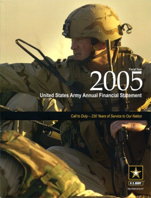 Download This Year's Entry Form Annual Report Highlights: View Competition Class Performance | Company/Agency Name: | United States Department of Army    / IBM Global Business Services | | Company/Agency Web Site: | www.army.mil / www.ibm.com | | Annual Revenue: | $1+ Billion | | Employee Base: | 10,000+ Employees | | Core Industry: | Government - City/State/National | Approximate Number of Pages (Narrative/Financial Percent): | 318 (2.5%/97.5%) | | Notable Feature(s): | Non-10K / MD&A Pull-Out(s) | | Award Garnered: | Silver | | | | Judging Results | | First Impression: | | | Report Cover: | | | Letter to Shareholders: | | | Report Narrative: | | | Report Financials: | | | Creativity: | | | Message Clarity: | | | Information Accessibility: | | | Total Score: | |