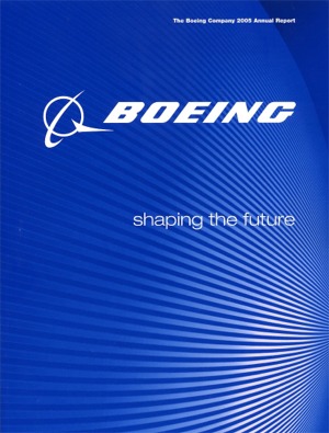 Download This Year's Entry Form Annual Report Highlights: View Competition Class Performance | Company/Agency Name: | The Boeing Company    / Meta 4 Design, Inc. | | Company/Agency Web Site: | www.boeing.com / www.meta4design.com | | Company Ticker Symbol: | BA | | Annual Revenue: | $1+ Billion | | Employee Base: | 10,000+ Employees | | Core Industry: | Aerospace & Defense | Approximate Number of Pages (Narrative/Financial Percent): | 96 (20.8%/79.2%) | | Award Garnered: | Gold | | | | Judging Results | | First Impression: | | | Report Cover: | | | Letter to Shareholders: | | | Report Narrative: | | | Report Financials: | | | Creativity: | | | Message Clarity: | | | Information Accessibility: | | | Total Score: | |