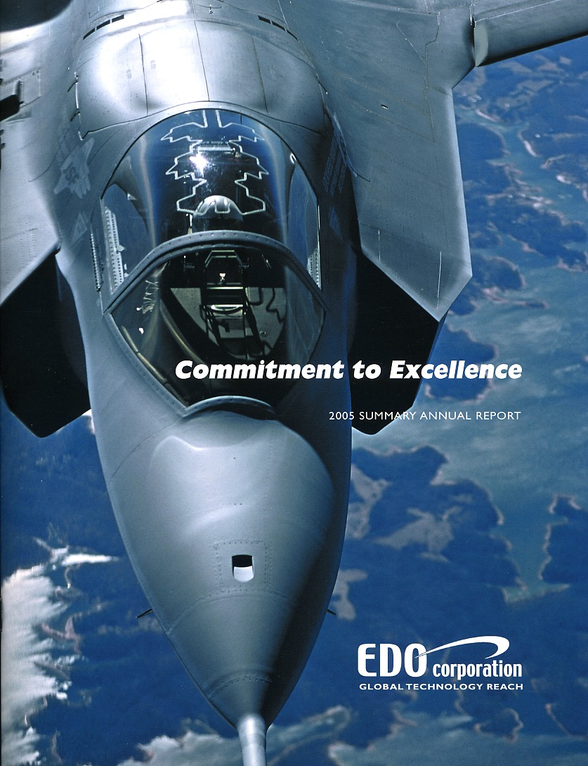 Download This Year's Entry Form Annual Report Highlights: View Competition Class Performance | Company Name: | EDO Corporation    | | Company Web Site: | www.edocorp.com | | Company Ticker Symbol: | EDO | | Annual Revenue: | $100 Million - $1 Billion | | Employee Base: | 1,000 - 10,000 Employees | | Core Industry: | Aerospace & Defense | Approximate Number of Pages (Narrative/Financial Percent): | 116 (27.6%/72.4%) | | Award Garnered: | Silver | | | | Judging Results | | First Impression: | | | Report Cover: | | | Letter to Shareholders: | | | Report Narrative: | | | Report Financials: | | | Creativity: | | | Message Clarity: | | | Information Accessibility: | | | Total Score: | |