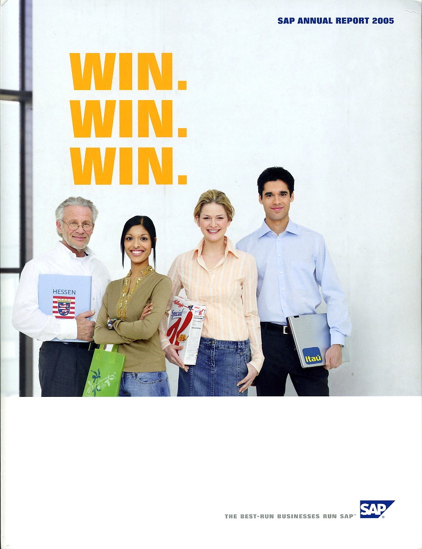 Download This Year's Entry Form Annual Report Highlights: View Competition Class Performance | Company/Agency Name: | SAP AG    / Kuhn, Kammann & Kuhn AG | | Company/Agency Web Site: | www.sap.com / www.kkk-ag.de | | Company Ticker Symbol: | SAP | | Annual Revenue: | $1+ Billion | | Employee Base: | 10,000+ Employees | | Core Industry: | Technology - Software | Approximate Number of Pages (Narrative/Financial Percent): | 156 (30.8%/69.2%) | | Notable Feature(s): | Fold-Out Cover, Narrative Fold-Out / Gatefold | | Award Garnered: | Platinum | | Top 100 Rank: | 6 | | | | Judging Results | | First Impression: | | | Report Cover: | | | Letter to Shareholders: | | | Report Narrative: | | | Report Financials: | | | Creativity: | | | Message Clarity: | | | Information Accessibility: | | | Total Score: | |