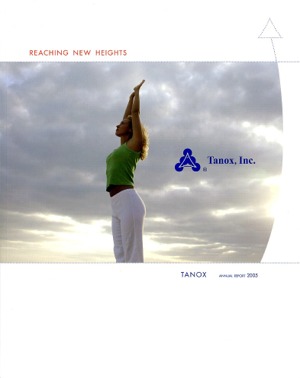 Download This Year's Entry Form Annual Report Highlights: View Competition Class Performance | Company/Agency Name: | Tanox, Inc.    / Curran & Connors | | Company/Agency Web Site: | www.tanox.com / www.curran-connors.com | | Company Ticker Symbol: | TNOX | | Annual Revenue: | $10 Million - $100 Million | | Employee Base: | 100 - 1,000 Employees | | Core Industry: | Biotechnology | Approximate Number of Pages (Narrative/Financial Percent): | 96 (8.3%/91.7%) | | Award Garnered: | Silver | | | | Judging Results | | First Impression: | | | Report Cover: | | | Letter to Shareholders: | | | Report Narrative: | | | Report Financials: | | | Creativity: | | | Message Clarity: | | | Information Accessibility: | | | Total Score: | |