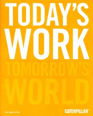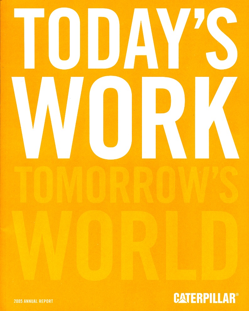 Download This Year's Entry Form Annual Report Highlights: View Competition Class Performance | Company/Agency Name: | Caterpillar Inc.    / VSA Partners | | Company/Agency Web Site: | www.cat.com / www.vsapartners.com | | Company Ticker Symbol: | CAT | | Annual Revenue: | $1+ Billion | | Employee Base: | 10,000+ Employees | | Core Industry: | Equipment, Machinery & Instruments | Approximate Number of Pages (Narrative/Financial Percent): | 76 (92.1%/7.9%) | | Notable Feature(s): | Government / Diversity / Accountability / Related Review(s) | | Award Garnered: | Bronze | | Top 100 Rank: | 91 | | | | Judging Results | | First Impression: | | | Report Cover: | | | Letter to Shareholders: | | | Report Narrative: | | | Report Financials: | | | Creativity: | | | Message Clarity: | | | Information Accessibility: | | | Total Score: | |