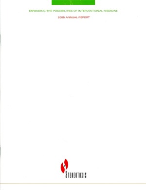 Download This Year's Entry Form Annual Report Highlights: View Competition Class Performance | Company/Agency Name: | Stereotaxis    / Obata Design, Inc. | | Company/Agency Web Site: | www.stereotaxis.com / www.obatadesign.com | | Company Ticker Symbol: | STXS | | Annual Revenue: | $10 Million - $100 Million | | Employee Base: | 100 - 1,000 Employees | | Core Industry: | Health Care - Equipment & Supplies | Approximate Number of Pages (Narrative/Financial Percent): | 12 (100.0%/0.0%) | | Notable Feature(s): | Embossed Cover | | Award Garnered: | Honors | | | | Judging Results | | First Impression: | | | Report Cover: | | | Letter to Shareholders: | | | Report Narrative: | | | Report Financials: | | | Creativity: | | | Message Clarity: | | | Information Accessibility: | | | Total Score: | |