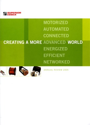 Download This Year's Entry Form Annual Report Highlights: View Competition Class Performance | Company/Agency Name: | Superior Essex    / The Jones Group | | Company/Agency Web Site: | www.superioressex.com / www.thejonesgroup.com | | Company Ticker Symbol: | SPSX | | Annual Revenue: | $1+ Billion | | Employee Base: | 1,000 - 10,000 Employees | | Core Industry: | Materials | Approximate Number of Pages (Narrative/Financial Percent): | 190 (8.4%/91.6%) | | Award Garnered: | Bronze | | | | Judging Results | | First Impression: | | | Report Cover: | | | Letter to Shareholders: | | | Report Narrative: | | | Report Financials: | | | Creativity: | | | Message Clarity: | | | Information Accessibility: | | | Total Score: | |