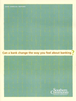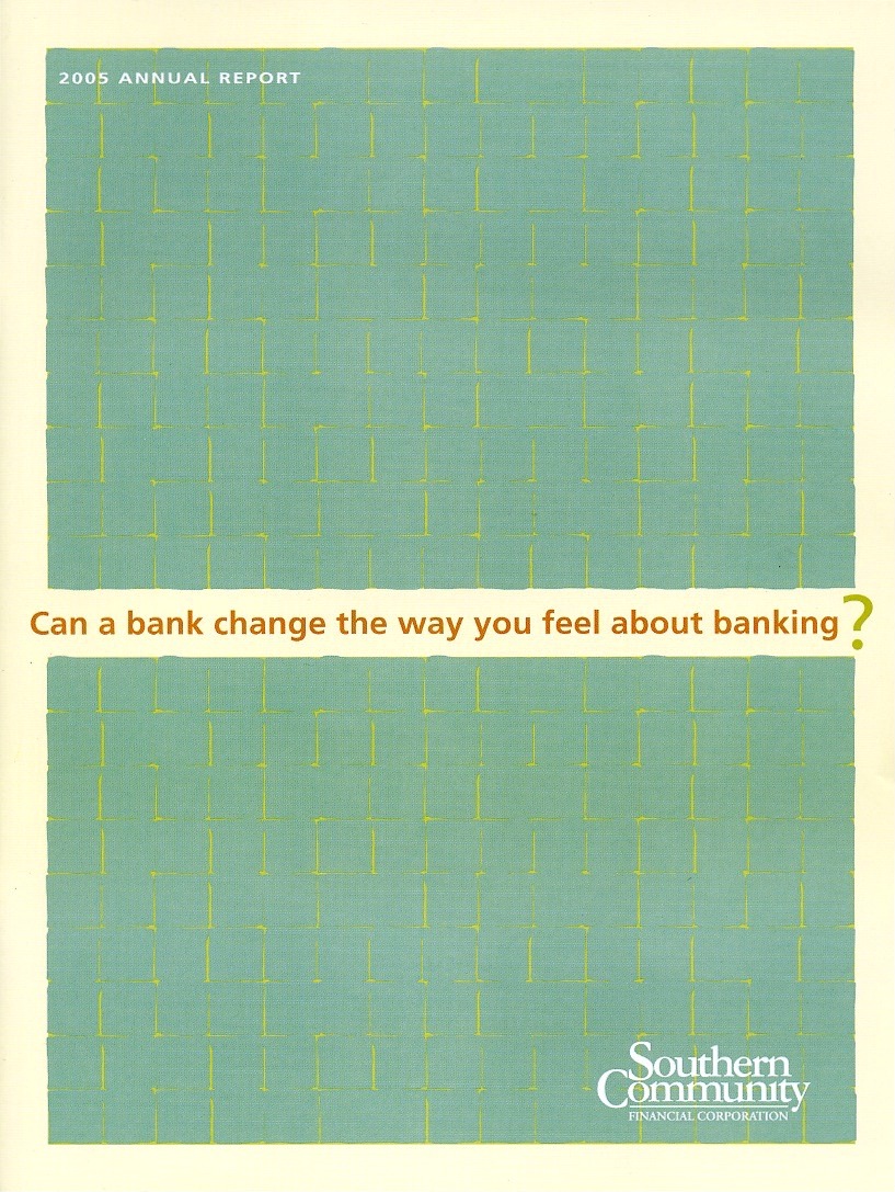 Download This Year's Entry Form Annual Report Highlights: View Competition Class Performance | Company/Agency Name: | Southern Community Financial Corporation    / The Bloom Agency | | Company/Agency Web Site: | www.smallenoughtocare.com / www.thebloomagency.com | | Company Ticker Symbol: | SCMF | | Annual Revenue: | $1+ Billion | | Employee Base: | 100 - 1,000 Employees | | Core Industry: | Banks | Approximate Number of Pages (Narrative/Financial Percent): | 36 (66.7%/33.3%) | | Award Garnered: | Honors | | | | Judging Results | | First Impression: | | | Report Cover: | | | Letter to Shareholders: | | | Report Narrative: | | | Report Financials: | | | Creativity: | | | Message Clarity: | | | Information Accessibility: | | | Total Score: | |