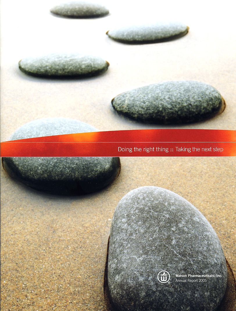 Download This Year's Entry Form Annual Report Highlights: View Competition Class Performance | Company/Agency Name: | Watson Pharmaceuticals, Inc.    / Baker Brand Communications | | Company/Agency Web Site: | www.watsonpharm.com / www.bakerbuilds.com | | Company Ticker Symbol: | WPI | | Annual Revenue: | $1+ Billion | | Employee Base: | 1,000 - 10,000 Employees | | Core Industry: | Pharmaceuticals | Approximate Number of Pages (Narrative/Financial Percent): | 15 (93.3%/6.7%) | | Notable Feature(s): | Fold-Out Cover | | Award Garnered: | Honors | | | | Judging Results | | First Impression: | | | Report Cover: | | | Letter to Shareholders: | | | Report Narrative: | | | Report Financials: | | | Creativity: | | | Message Clarity: | | | Information Accessibility: | | | Total Score: | |