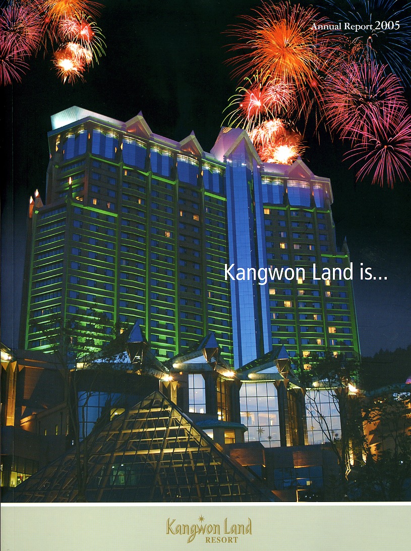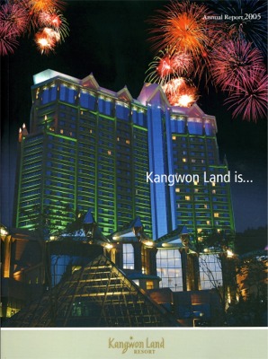 Download This Year's Entry Form Annual Report Highlights: View Competition Class Performance | Company/Agency Name: | Kangwon Land    / IRPLUS | | Company/Agency Web Site: | www.kangwonland.com / www.irplus.co.kr | | Annual Revenue: | $100 Million - $1 Billion | | Employee Base: | 1,000 - 10,000 Employees | | Core Industry: | Consumer Services - Hotels/Restaurants/Leisure | Approximate Number of Pages (Narrative/Financial Percent): | 62 (54.8%/45.2%) | | Award Garnered: | Silver | | | | Judging Results | | First Impression: | | | Report Cover: | | | Letter to Shareholders: | | | Report Narrative: | | | Report Financials: | | | Creativity: | | | Message Clarity: | | | Information Accessibility: | | | Total Score: | |