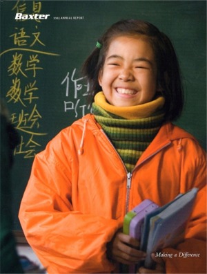 Download This Year's Entry Form Annual Report Highlights: View Competition Class Performance | Company/Agency Name: | Baxter International Inc.    / Paragraphs Design | | Company/Agency Web Site: | www.baxter.com / www.paragraphs.com | | Company Ticker Symbol: | BAX | | Annual Revenue: | $1+ Billion | | Employee Base: | 10,000+ Employees | | Core Industry: | Health Care - Equipment & Supplies | Approximate Number of Pages (Narrative/Financial Percent): | 88 (18.2%/81.8%) | | Award Garnered: | Silver | | | | Judging Results | | First Impression: | | | Report Cover: | | | Letter to Shareholders: | | | Report Narrative: | | | Report Financials: | | | Creativity: | | | Message Clarity: | | | Information Accessibility: | | | Total Score: | |