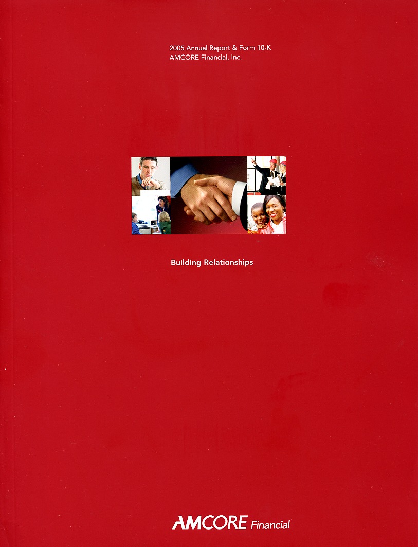 Download This Year's Entry Form Annual Report Highlights: View Competition Class Performance | Company/Agency Name: | AMCORE Financial, Inc.    / Graham Spencer | | Company Web Site: | www.amcore.com | | Company Ticker Symbol: | AMFI | | Annual Revenue: | $100 Million - $1 Billion | | Employee Base: | 1,000 - 10,000 Employees | | Core Industry: | Banks | Approximate Number of Pages (Narrative/Financial Percent): | 116 (13.8%/86.2%) | | Award Garnered: | Honors | | | | Judging Results | | First Impression: | | | Report Cover: | | | Letter to Shareholders: | | | Report Narrative: | | | Report Financials: | | | Creativity: | | | Message Clarity: | | | Information Accessibility: | | | Total Score: | |