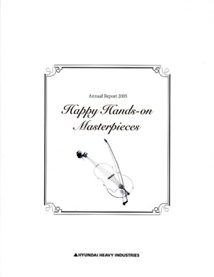 Download This Year's Entry Form Annual Report Highlights: View Competition Class Performance | Company/Agency Name: | Hyundai Heavy Industries    / PAOS, Inc. | | Company/Agency Web Site: | www.hhi.co.kr / www.irgallery.co.kr | | Annual Revenue: | $1+ Billion | | Employee Base: | 1,000 - 10,000 Employees | | Core Industry: | Equipment, Machinery & Instruments | Approximate Number of Pages (Narrative/Financial Percent): | 102 (47.1%/52.9%) | | Award Garnered: | Bronze | | Top 100 Rank: | 62 | | | | Judging Results | | First Impression: | | | Report Cover: | | | Letter to Shareholders: | | | Report Narrative: | | | Report Financials: | | | Creativity: | | | Message Clarity: | | | Information Accessibility: | | | Total Score: | |