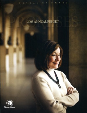 Download This Year's Entry Form Annual Report Highlights: View Competition Class Performance | Company Name: | Mutual of Omaha    | | Company Web Site: | www.mutualofomaha.com | | Annual Revenue: | $1+ Billion | | Employee Base: | 10,000+ Employees | | Core Industry: | Insurance | Approximate Number of Pages (Narrative/Financial Percent): | 24 (58.3%/41.7%) | | Award Garnered: | Honors | | | | Judging Results | | First Impression: | | | Report Cover: | | | Letter to Shareholders: | | | Report Narrative: | | | Report Financials: | | | Creativity: | | | Message Clarity: | | | Information Accessibility: | | | Total Score: | |