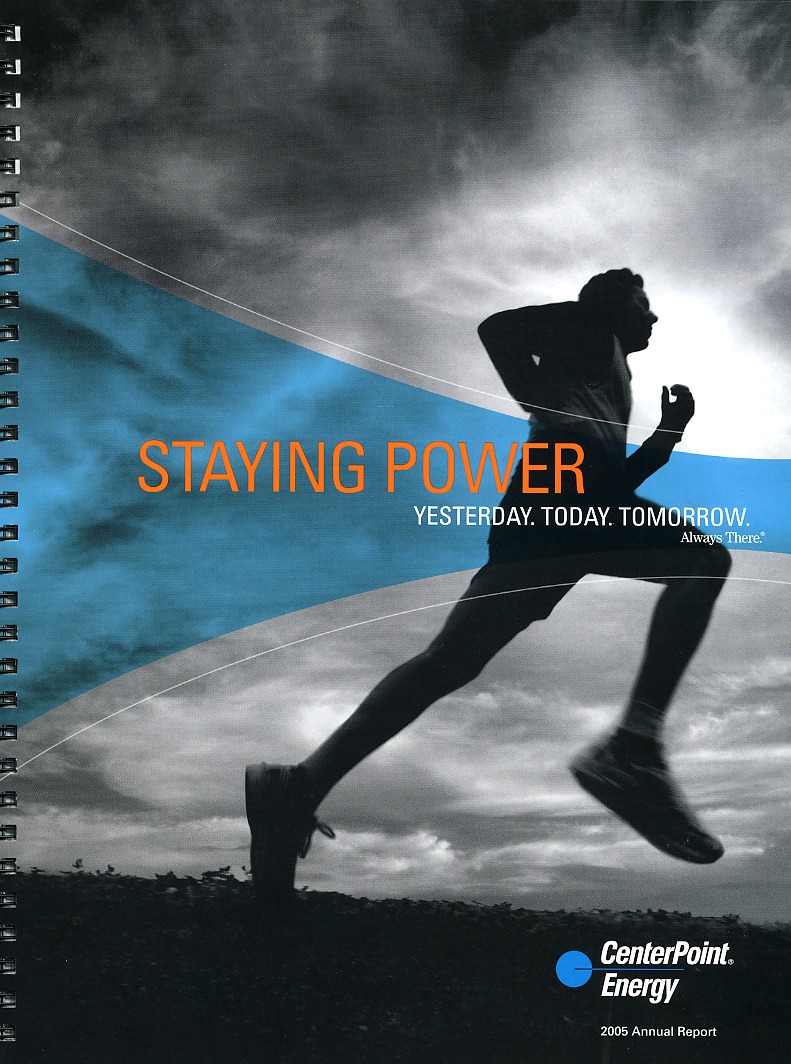 Download This Year's Entry Form Annual Report Highlights: View Competition Class Performance | Company Name: | CenterPoint Energy    | | Company Web Site: | www.centerpointenergy.com | | Company Ticker Symbol: | CNP | | Annual Revenue: | $1+ Billion | | Employee Base: | 1,000 - 10,000 Employees | | Core Industry: | Utilities - Multi/Water/Traders | Approximate Number of Pages (Narrative/Financial Percent): | 150 (10.7%/89.3%) | | Award Garnered: | Bronze | | | | Judging Results | | First Impression: | | | Report Cover: | | | Letter to Shareholders: | | | Report Narrative: | | | Report Financials: | | | Creativity: | | | Message Clarity: | | | Information Accessibility: | | | Total Score: | |