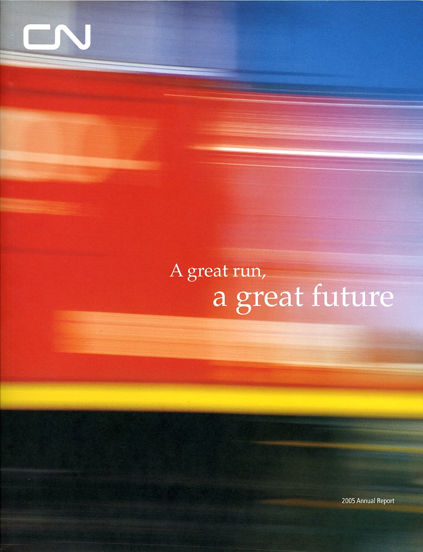 Download This Year's Entry Form Annual Report Highlights: View Competition Class Performance | Company Name: | CN    | | Company Web Site: | www.cn.ca | | Company Ticker Symbol: | CNI | | Annual Revenue: | $1+ Billion | | Employee Base: | 10,000+ Employees | | Core Industry: | Transportation & Logistics | Approximate Number of Pages (Narrative/Financial Percent): | 106 (41.5%/58.5%) | | Notable Feature(s): | Glossary | | Award Garnered: | Platinum | | Top 100 Rank: | 26 | | | | Judging Results | | First Impression: | | | Report Cover: | | | Letter to Shareholders: | | | Report Narrative: | | | Report Financials: | | | Creativity: | | | Message Clarity: | | | Information Accessibility: | | | Total Score: | |