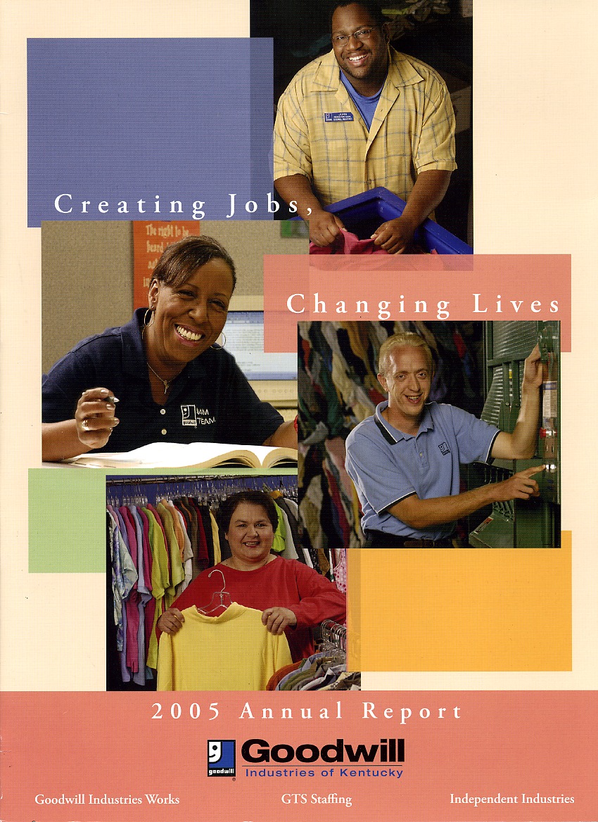 Download This Year's Entry Form Annual Report Highlights: View Competition Class Performance | Company Name: | Goodwill Industries of Kentucky    | | Company Web Site: | www.goodwillky.org | | Annual Revenue: | $10 Million - $100 Million | | Employee Base: | 100 - 1,000 Employees | | Core Industry: | Non-Profits | Approximate Number of Pages (Narrative/Financial Percent): | 8 (87.5%/12.5%) | | Award Garnered: | Honors | | | | Judging Results | | First Impression: | | | Report Cover: | | | Letter to Shareholders: | | | Report Narrative: | | | Report Financials: | | | Creativity: | | | Message Clarity: | | | Information Accessibility: | | | Total Score: | |