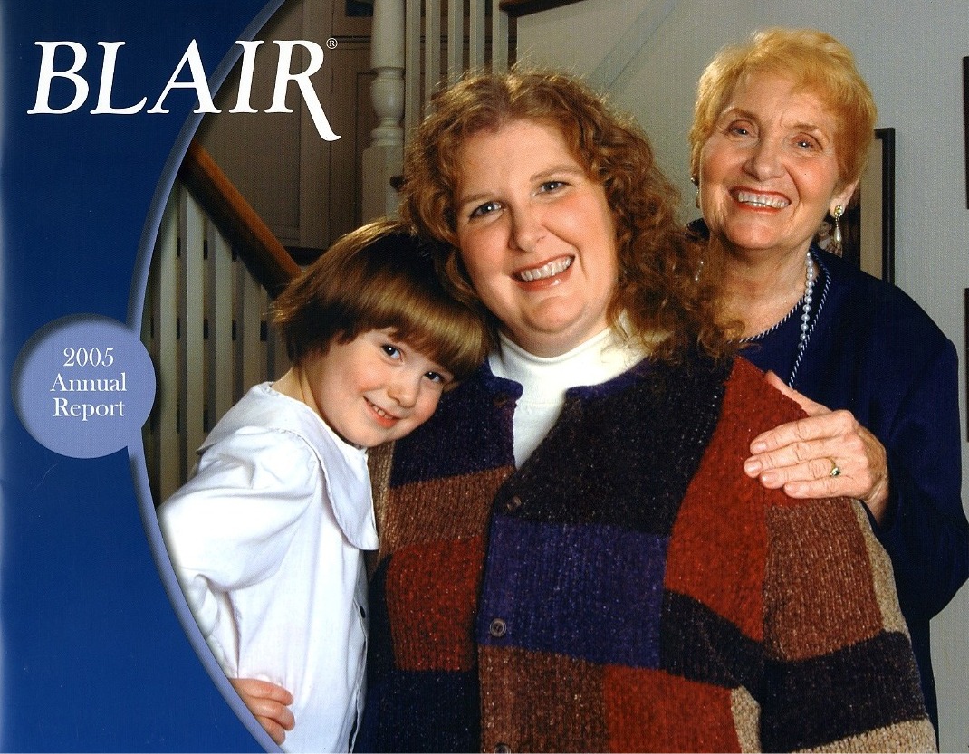 Download This Year's Entry Form Annual Report Highlights: View Competition Class Performance | Company Name: | Blair Corporation    | | Company Web Site: | www.blair.com | | Company Ticker Symbol: | BL | | Annual Revenue: | $100 Million - $1 Billion | | Employee Base: | 1,000 - 10,000 Employees | | Core Industry: | Retailing | Approximate Number of Pages (Narrative/Financial Percent): | 68 (20.6%/79.4%) | | Award Garnered: | Honors | | | | Judging Results | | First Impression: | | | Report Cover: | | | Letter to Shareholders: | | | Report Narrative: | | | Report Financials: | | | Creativity: | | | Message Clarity: | | | Information Accessibility: | | | Total Score: | |