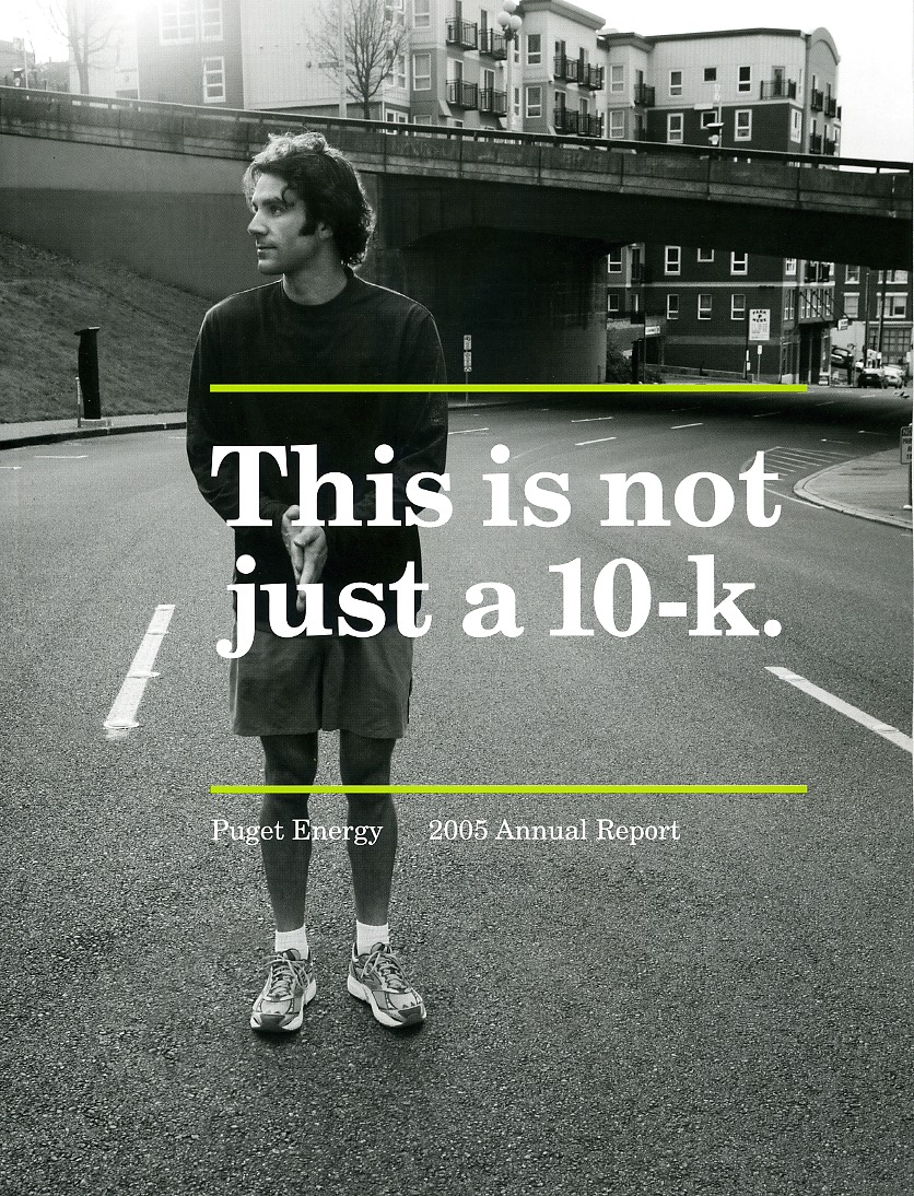 Download This Year's Entry Form Annual Report Highlights: View Competition Class Performance | Company/Agency Name: | Puget Energy    / Thinkhouse Creative | | Company/Agency Web Site: | www.pugetenergy.com / www.thinkhouse.com | | Company Ticker Symbol: | PSD | | Annual Revenue: | $1+ Billion | | Employee Base: | 1,000 - 10,000 Employees | | Core Industry: | Utilities - Multi/Water/Traders | Approximate Number of Pages (Narrative/Financial Percent): | 140 (8.6%/91.4%) | | Award Garnered: | Silver | | | | Judging Results | | First Impression: | | | Report Cover: | | | Letter to Shareholders: | | | Report Narrative: | | | Report Financials: | | | Creativity: | | | Message Clarity: | | | Information Accessibility: | | | Total Score: | |
