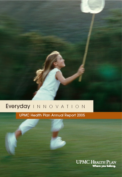 Download This Year's Entry Form Annual Report Highlights: View Competition Class Performance | Company Name: | UPMC Health Plan    | | Company Web Site: | www.upmc.edu | | Annual Revenue: | $1+ Billion | | Employee Base: | 1,000 - 10,000 Employees | | Core Industry: | Health Care - Providers & Services | Approximate Number of Pages (Narrative/Financial Percent): | 56 (89.3%/10.7%) | | Award Garnered: | Silver | | | | Judging Results | | First Impression: | | | Report Cover: | | | Letter to Shareholders: | | | Report Narrative: | | | Report Financials: | | | Creativity: | | | Message Clarity: | | | Information Accessibility: | | | Total Score: | |