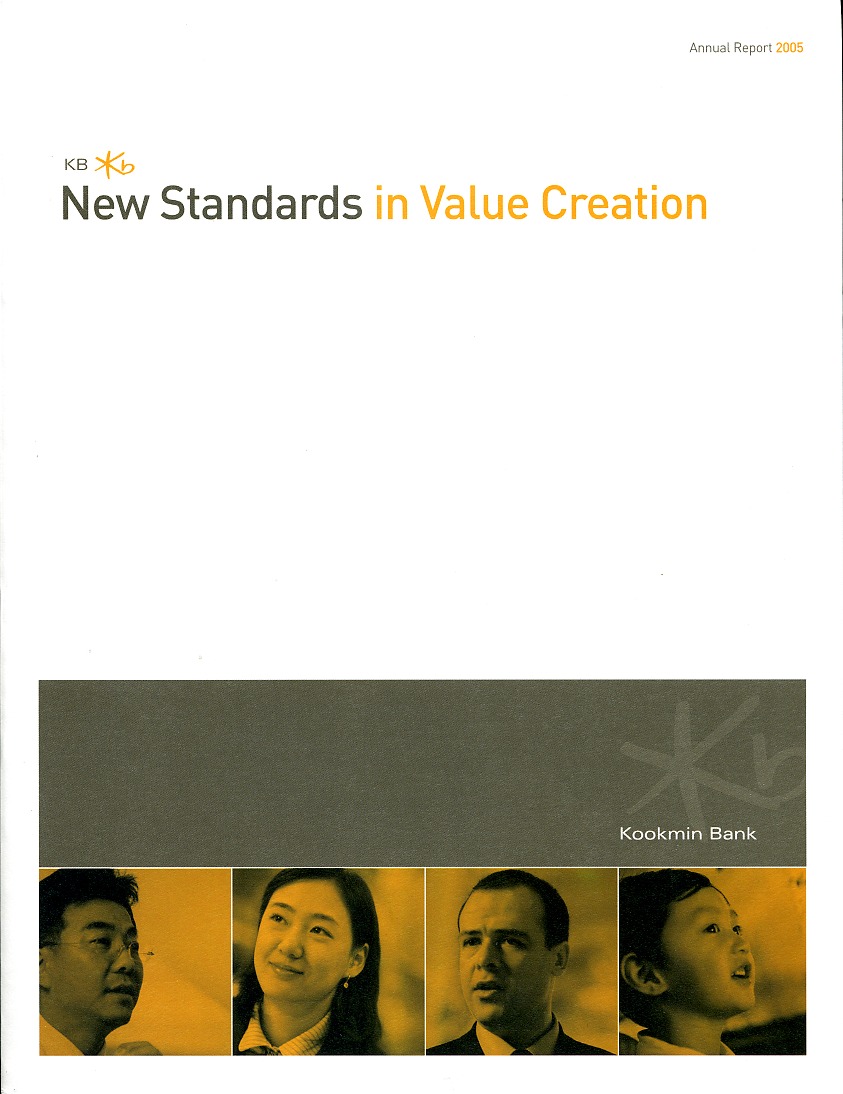 Download This Year's Entry Form Annual Report Highlights: View Competition Class Performance | Company/Agency Name: | Kookmin Bank    / UCC Inc. | | Company/Agency Web Site: | www.kbstar.co.kr / www.ucc.co.kr | | Annual Revenue: | $1+ Billion | | Employee Base: | 1,000 - 10,000 Employees | | Core Industry: | Banks | Approximate Number of Pages (Narrative/Financial Percent): | 262 (24.4%/75.6%) | | Award Garnered: | Silver | | Top 100 Rank: | 100 | | | | Judging Results | | First Impression: | | | Report Cover: | | | Letter to Shareholders: | | | Report Narrative: | | | Report Financials: | | | Creativity: | | | Message Clarity: | | | Information Accessibility: | | | Total Score: | |