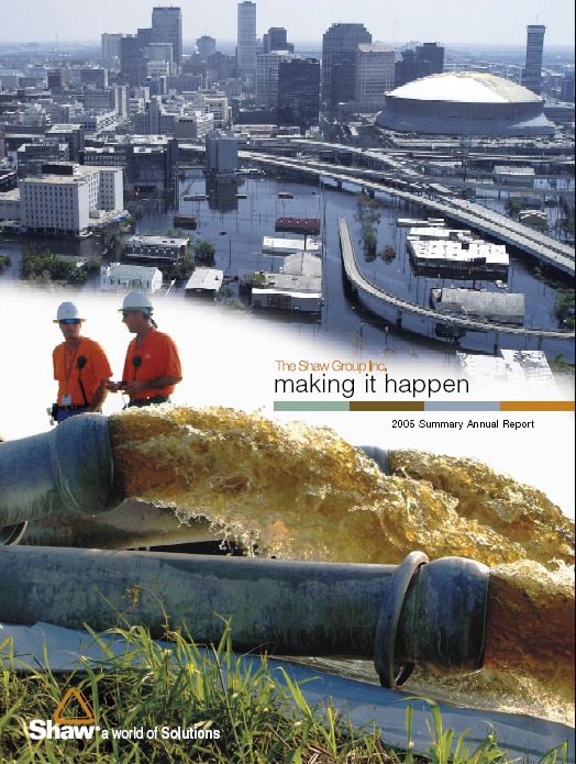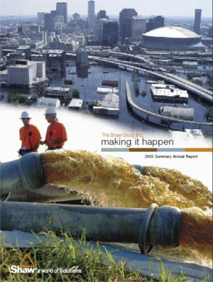 Download This Year's Entry Form Annual Report Highlights: View Competition Class Performance | Company Name: | The Shaw Group, Inc.    | | Company Web Site: | www.shawgrp.com | | Company Ticker Symbol: | SGR | | Annual Revenue: | $1+ Billion | | Employee Base: | 10,000+ Employees | | Core Industry: | Conglomerates, Holding Co., Div. Invest. | Approximate Number of Pages (Narrative/Financial Percent): | 20 (90.0%/10.0%) | | Award Garnered: | Honors | | | | Judging Results | | First Impression: | | | Report Cover: | | | Letter to Shareholders: | | | Report Narrative: | | | Report Financials: | | | Creativity: | | | Message Clarity: | | | Information Accessibility: | | | Total Score: | |