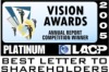 Top 100 awards are given to the highest-scoring entries regardless of competition class. Ties are broken by weighting various judging criteria according to overall importance. LEGAL NOTICE Fortune 500 and Fortune 1000 are registered trademarks of Fortune Magazine. Forbes Global 2000 is a registered trademark of Forbes Magazine. | Top 100 Annual Reports of 2005 | | 1. | Heidelberger Druck / Hilger & Boie GmbH |   | | 2. | Fresenius Medical Care / Colours ec GmbH |  | | 3. | D.Logistics AG / FIRST RABBIT GmbH |   | | 4. | WPP |  | | 5. | Kumho Asiana / IRKUDOS |   | | 6. | SAP AG / Kuhn, Kammann & Kuhn AG |  | | 7. | CeWe Color Holding AG & Co. / FIRST RABBIT GmbH |   | | 8. | Bank BNI / PT Maksimarka Komunikasi |  | | 9. | KTF / PAOS, Inc. |   | | 10. | Pfalzwerke AG / schulze, reister, groezinger, wer ... AG |  | | 11. | Lanxess |   | | 12. | Bertelsmann AG / Kirchhoff Consult AG |  | | 13. | Heineken Intl / Addison Corporate Marketing |   | | 14. | Devon Energy Corporation |  | | 15. | General Electric |   | | 16. | PT Antam Tbk |  | | 17. | IVG Immobilien AG / XEO creative |   | | 18. | Deutsche EuroShop AG / IR-One AG & Co. KG |  | | 19. | Kia Motors / IRPLUS |   | | 20. | Syngenta Intl / Addison Corporate Marketing |  | | 21. | Voith AG / CAT Consultants |   | | 22. | Koerber AG / CAT Consultants |  | | 23. | Fresenius AG / Hilger & Boie GmbH |   | | 24. | Volkswagen Financial Services AG / CAT Consultants |  | | 25. | Korea Electric Power (KEPCO) / Ahn Graphics Ltd. |   | | 26. | CN |  | | 27. | Invitrogen Corporation / Mentus |   | | 28. | Booz Allen Hamilton / JHDG Design |  | | 29. | Daiwa House Industry Co., Ltd. |   | | 30. | The First American Corporation / Ervin Bell MarComms |  | | 31. | United States Department of State |   | | 32. | Orion Group / UCC Inc. |  | | 33. | Morphosys AG / 3st kommunikation GmbH |   | | 34. | Kellogg Company |  | | 35. | GS Engineering & Construction / IRKUDOS |   | | 36. | Secunet Security Networks AG / IR-One AG & Co. KG |  | | 37. | America Movil / SIGNI |   | | 38. | Constantia Pack. / Schoeller Corp. Comm. |  | | 39. | Erste Bank / Schoeller Corporate Communication |   | | 40. | Procter & Gamble / Landor |  | | 41. | swb AG / IR-One AG & Co. KG |   | | 42. | Bayer AG / Kirchhoff Consult AG |  | | 43. | USU Software AG / freework Grafik-Design |   | | 44. | Cemex / SIGNI |  | | 45. | BAA plc / Addison Corporate Marketing |   | | 46. | Constellation Energy / Leap Communications |  | | 47. | Agrium Inc. / NonFiction |   | | 48. | Mahle / Lorenz & Company |  | | 49. | ElringKlinger / Lorenz & Company |   | | 50. | Geo / SIGNI |  | | 51. | Cadbury Schweppes PLC / Addison Corporate Marketing |   | | 52. | Canadian Natural Resources Limited / nonfiction studios inc. |  | | 53. | Korean Air / UCC Inc. |   | | 54. | Power Financial Corporation / Ardoise Design Comms |  | | 55. | Hydro-Quebec / Ardoise Design Communications inc. |   | | 56. | Hamburger Hochbahn / IR-One AG & Co. KG |  | | 57. | BAE Systems PLC / Addison Corporate Marketing |   | | 58. | FEMSA / Curran & Connors |  | | 59. | Textron / Inergy Group |   | | 60. | Cascade Financial Corporation |  | | 61. | Infosys Technologies Ltd. |   | | 62. | Hyundai Heavy Industries / PAOS, Inc. |  | | 63. | United States Department of the Navy |   | | 64. | Cox Enterprises, Inc. / Corporate Reports |  | | 65. | NRG Energy, Inc. / Design Center |   | | 66. | Husky Energy Inc. / The Design Centre of Canada |  | | 67. | Indymac Bancorp, / Baker Brand Comms |   | | 68. | Coca-Cola FEMSA / Paragraphs Design |  | | 69. | Suess MicroTec AG / IR-One AG & Co. KG |   | | 70. | IDEXX Laboratories, Inc. |  | | 71. | Sparkassen Immobilien AG / Schoeller CorpComm |   | | 72. | EVN AG |  | | 73. | Leap Wireless / Mentus |   | | 74. | Marriott International / Vivo Design |  | | 75. | Countrywide Financial Corp. / Praxis |   | | 76. | QUALCOMM Incorporated / Baker Brand Comms |  | | 77. | Cheil Industries Inc. / PAOS, Inc. |   | | 78. | Henkel KGaA / Kirchhoff Hamburg |  | | 79. | MediGene AG / Kirchhoff Consult AG |   | | 80. | Crescent Real Estate Equity / Methodologie |  | | 81. | Palfinger AG / Rahofer Werbeagentur |   | | 82. | Washington Mutual / Methodologie |  | | 83. | 1-800-FLOWERS.COM / M. Pucci Advertising |   | | 84. | Transcontinental Inc. |  | | 85. | Cascades Inc. / Ardoise Design Communications |   | | 86. | KT / Lucre Beyond Co., Ltd. |  | | 87. | CMC Microsystems / Curran Communications |   | | 88. | Hormel Foods Corp. / The Nancekivell Group |  | | 89. | NW Natural |   | | 90. | Tyson Foods Inc. / Critt Graham + Associates |  | | 91. | Caterpillar Inc. / VSA Partners |   | | 92. | Nemetschek AG / FIRST RABBIT GmbH |  | | 93. | Forest City Ent. / Seich Ruffo Graphic Design |   | | 94. | Arcor AG & Co. KG / IR-One AG & Co. KG |  | | 95. | Grupo Cementos de Chihuahua / SIGNI |   | | 96. | Daewoo Motor Sales Corp. / IRPLUS |  | | 97. | Televisa / SIGNI |   | | 98. | Domtar / Nolin Branding & Design |  | | 99. | CJ Corp. / UCC Inc. |   | | 100. | Kookmin Bank / UCC Inc. |  |
