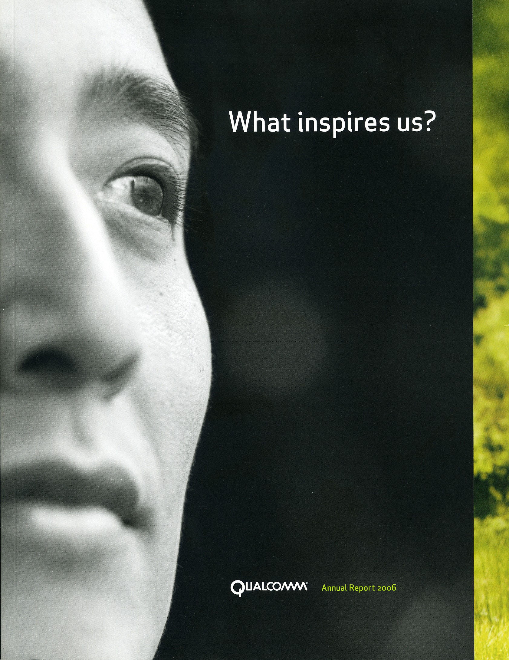 Download This Year's Entry Form Annual Report Highlights: View Competition Class Performance | Company/Agency Name: | QUALCOMM Incorporated    / Baker | Brand Communications | | Company/Agency Web Site: | www.qualcomm.com / www.bakerbuilds.com | | Company Ticker Symbol: | QCOM | | Annual Revenue: | $1+ Billion | | Employee Base: | 1,000 - 10,000 Employees | | Core Industry: | Telecommunications | Approximate Number of Pages: (Narrative/Financial Percent) | 82 (39.0%/61.0%) | | Notable Feature(s): | Tabs (Cut or Printed) | | Award Garnered: | Platinum | | Top 100 Rank: | 14 | | | | Judging Results | | First Impression: | | | Report Cover: | | | Letter to Shareholders: | | | Report Narrative: | | | Report Financials: | | | Creativity: | | | Message Clarity: | | | Information Accessibility: | | | Total Score: | |