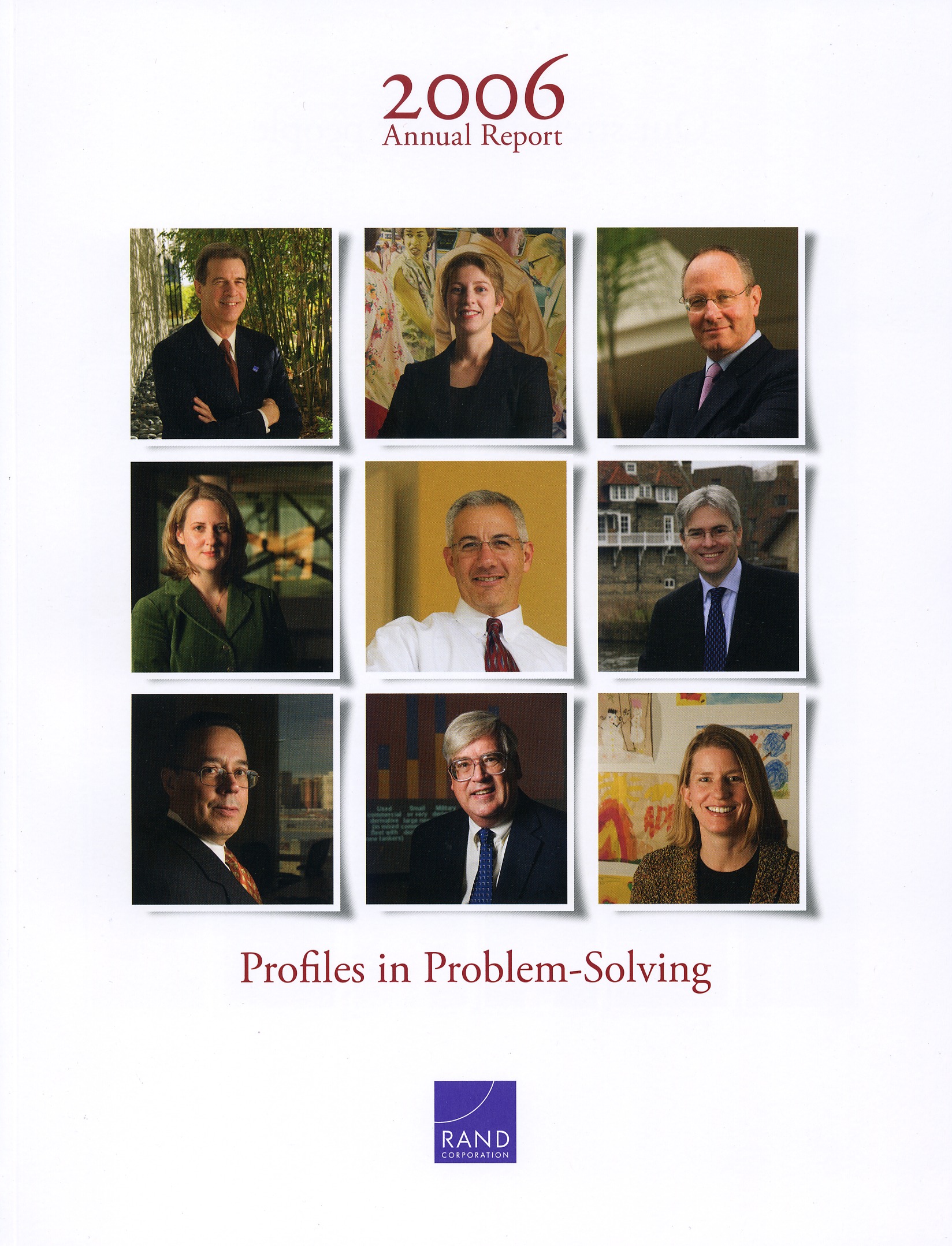 Download This Year's Entry Form Annual Report Highlights: View Competition Class Performance | Company Name: | RAND Corporation    | | Company Web Site: | www.rand.org | | Annual Revenue: | $100 Million - $1 Billion | | Employee Base: | 1,000 - 10,000 Employees | | Core Industry: | Non-Profits | Approximate Number of Pages: (Narrative/Financial Percent) | 62 (80.6%/19.4%) | | Award Garnered: | Gold | | | | Judging Results | | First Impression: | | | Report Cover: | | | Letter to Shareholders: | | | Report Narrative: | | | Report Financials: | | | Creativity: | | | Message Clarity: | | | Information Accessibility: | | | Total Score: | |