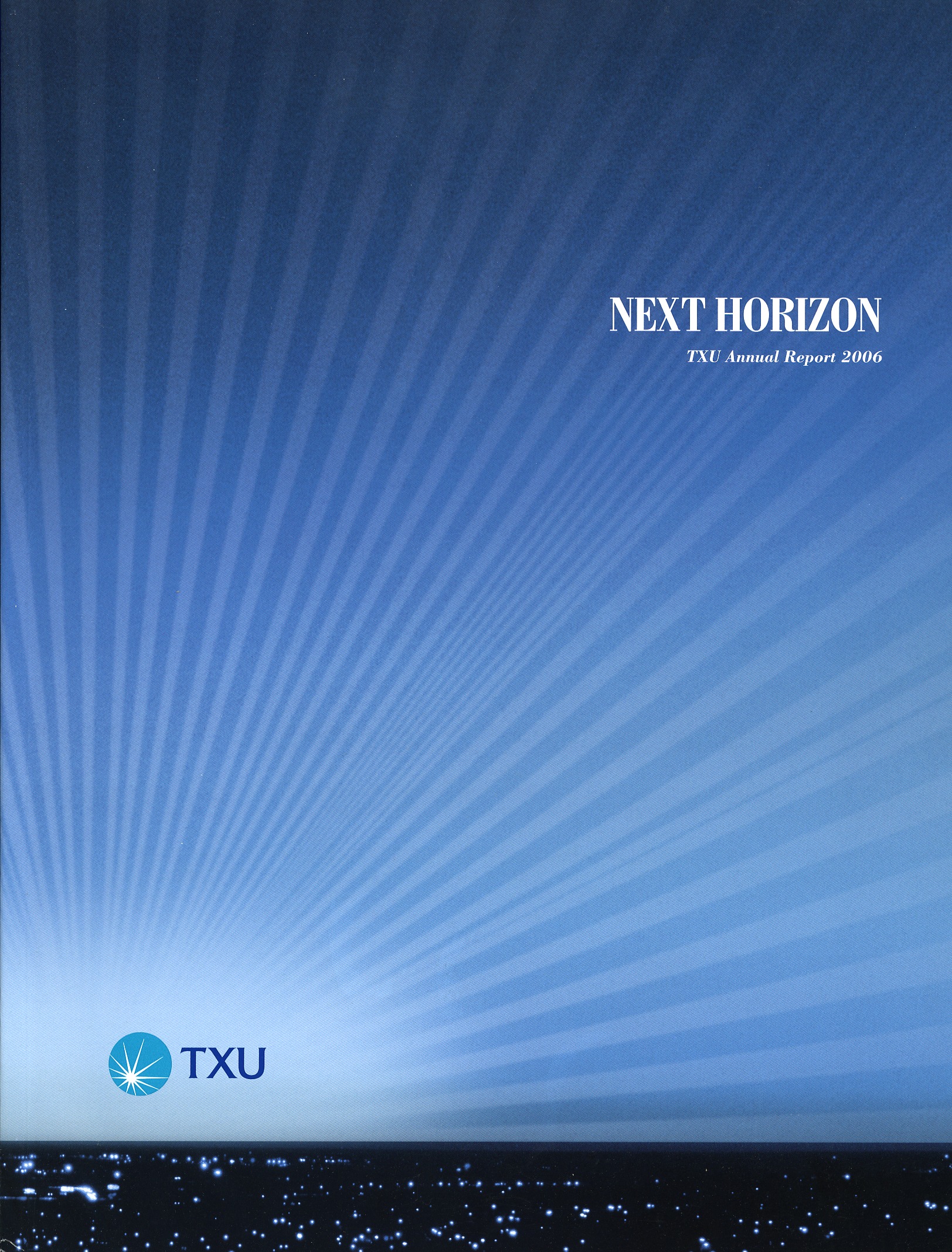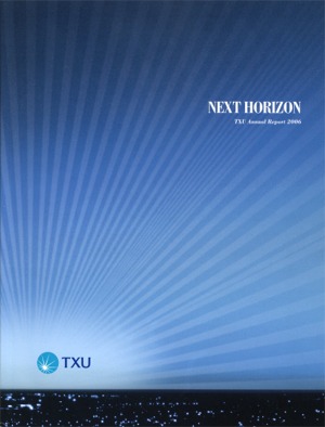 Download This Year's Entry Form Annual Report Highlights: View Competition Class Performance | Company/Agency Name: | TXU Corp.    / Eisenberg and Associates | | Company/Agency Web Site: | www.txucorp.com / www.eisenberg-inc.com | | Company Ticker Symbol: | TXU | | Annual Revenue: | $1+ Billion | | Employee Base: | 1,000 - 10,000 Employees | | Core Industry: | Utilities - Multi/Water/Traders | Approximate Number of Pages: (Narrative/Financial Percent) | 232 (6.9%/93.1%) | | Award Garnered: | Bronze | | | | Judging Results | | First Impression: | | | Report Cover: | | | Letter to Shareholders: | | | Report Narrative: | | | Report Financials: | | | Creativity: | | | Message Clarity: | | | Information Accessibility: | | | Total Score: | |