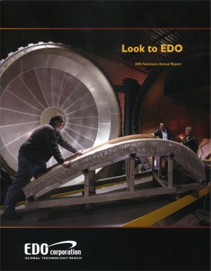 Download This Year's Entry Form Annual Report Highlights: View Competition Class Performance | Company Name: | EDO Corporation    | | Company Web Site: | www.edocorp.com | | Company Ticker Symbol: | EDO | | Annual Revenue: | $100 Million - $1 Billion | | Employee Base: | 1,000 - 10,000 Employees | | Core Industry: | Aerospace & Defense | Approximate Number of Pages: (Narrative/Financial Percent) | 136 (35.3%/64.7%) | | Notable Feature(s): | Fold-Out Cover, 10-K / MD&A Pull-Out(s) | | Award Garnered: | Gold | | | | Judging Results | | First Impression: | | | Report Cover: | | | Letter to Shareholders: | | | Report Narrative: | | | Report Financials: | | | Creativity: | | | Message Clarity: | | | Information Accessibility: | | | Total Score: | |