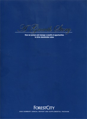 Download This Year's Entry Form Annual Report Highlights: View Competition Class Performance | Company/Agency Name: | Forest City Enterprises    / Seich Ruffo Graphic Design | | Company/Agency Web Site: | www.forestcity.net / www.seichruffo.com | | Company Ticker Symbol: | FCEA | | Annual Revenue: | $1+ Billion | | Employee Base: | 100 - 1,000 Employees | | Core Industry: | Real Estate/REIT | Approximate Number of Pages: (Narrative/Financial Percent) | 66 (54.5%/45.5%) | | Award Garnered: | Silver | | | | Judging Results | | First Impression: | | | Report Cover: | | | Letter to Shareholders: | | | Report Narrative: | | | Report Financials: | | | Creativity: | | | Message Clarity: | | | Information Accessibility: | | | Total Score: | |