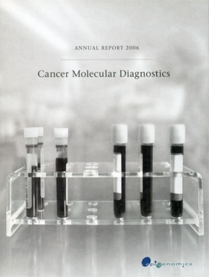 Download This Year's Entry Form Annual Report Highlights: View Competition Class Performance | Company/Agency Name: | Epigenomics    / 3st kommunikation GmbH | | Company/Agency Web Site: | www.epigenomics.com / www.3st.de | | Annual Revenue: | Up to $10 Million | | Employee Base: | Up to 100 Employees | | Core Industry: | Biotechnology | Approximate Number of Pages: (Narrative/Financial Percent) | 98 (61.2%/38.8%) | | Notable Feature(s): | Fold-Out Cover | | Award Garnered: | Gold | | | | Judging Results | | First Impression: | | | Report Cover: | | | Letter to Shareholders: | | | Report Narrative: | | | Report Financials: | | | Creativity: | | | Message Clarity: | | | Information Accessibility: | | | Total Score: | |