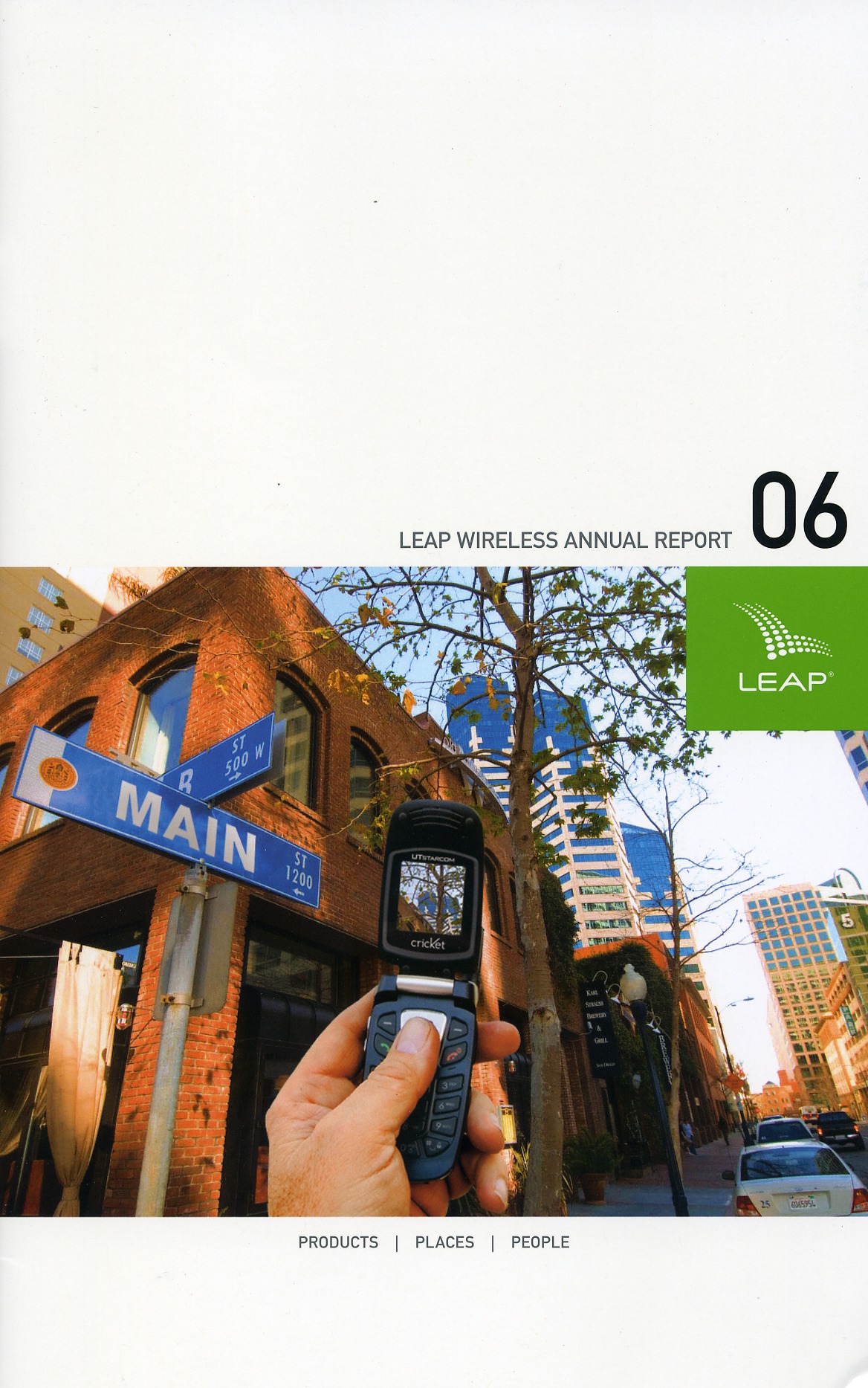 Download This Year's Entry Form Annual Report Highlights: View Competition Class Performance | Company/Agency Name: | Leap Wireless    / Mentus | | Company/Agency Web Site: | www.leapwireless.com / www.mentus.com | | Company Ticker Symbol: | LEAP | | Annual Revenue: | $1+ Billion | | Employee Base: | 1,000 - 10,000 Employees | | Core Industry: | Telecommunications | Approximate Number of Pages: (Narrative/Financial Percent) | 32 (50.0%/50.0%) | | Award Garnered: | Silver | | | | Judging Results | | First Impression: | | | Report Cover: | | | Letter to Shareholders: | | | Report Narrative: | | | Report Financials: | | | Creativity: | | | Message Clarity: | | | Information Accessibility: | | | Total Score: | |