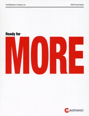 Download This Year's Entry Form Annual Report Highlights: View Competition Class Performance | Company/Agency Name: | The Manitowoc Company    / Meta 4 Design, Inc. | | Company/Agency Web Site: | www.manitowoc.com / www.meta4design.com | | Company Ticker Symbol: | MTW | | Annual Revenue: | $1+ Billion | | Employee Base: | 1,000 - 10,000 Employees | | Core Industry: | Equipment, Machinery & Instruments | Approximate Number of Pages: (Narrative/Financial Percent) | 96 (20.8%/79.2%) | | Notable Feature(s): | Glossary | | Award Garnered: | Honors | | | | Judging Results | | First Impression: | | | Report Cover: | | | Letter to Shareholders: | | | Report Narrative: | | | Report Financials: | | | Creativity: | | | Message Clarity: | | | Information Accessibility: | | | Total Score: | |