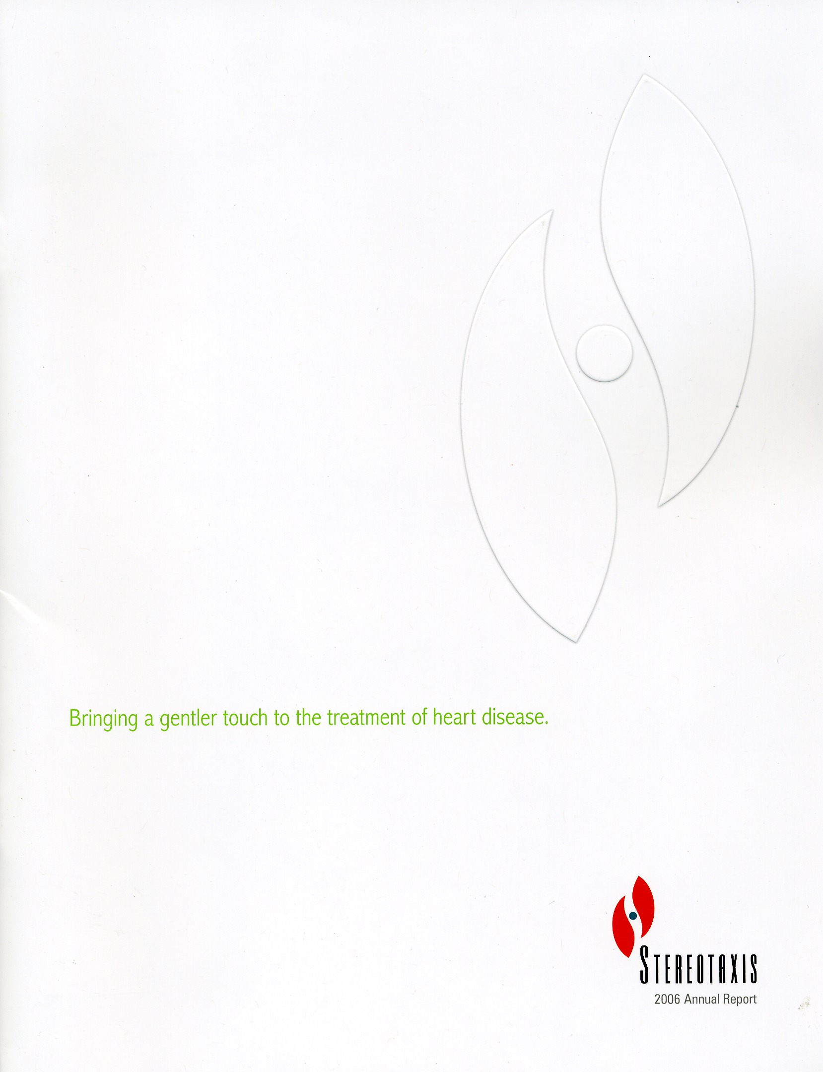 Download This Year's Entry Form Annual Report Highlights: View Competition Class Performance | Company/Agency Name: | Stereotaxis    / Obata Design, Inc. | | Company/Agency Web Site: | www.stereotaxis.com / www.obata.com | | Company Ticker Symbol: | STXS | | Annual Revenue: | $10 Million - $100 Million | | Employee Base: | 100 - 1,000 Employees | | Core Industry: | Health Care - Equipment & Supplies | Approximate Number of Pages: (Narrative/Financial Percent) | 12 (100.0%/0.0%) | | Notable Feature(s): | Embossed Cover, 10-K / MD&A Pull-Out(s) | | Award Garnered: | Honors | | | | Judging Results | | First Impression: | | | Report Cover: | | | Letter to Shareholders: | | | Report Narrative: | | | Report Financials: | | | Creativity: | | | Message Clarity: | | | Information Accessibility: | | | Total Score: | |