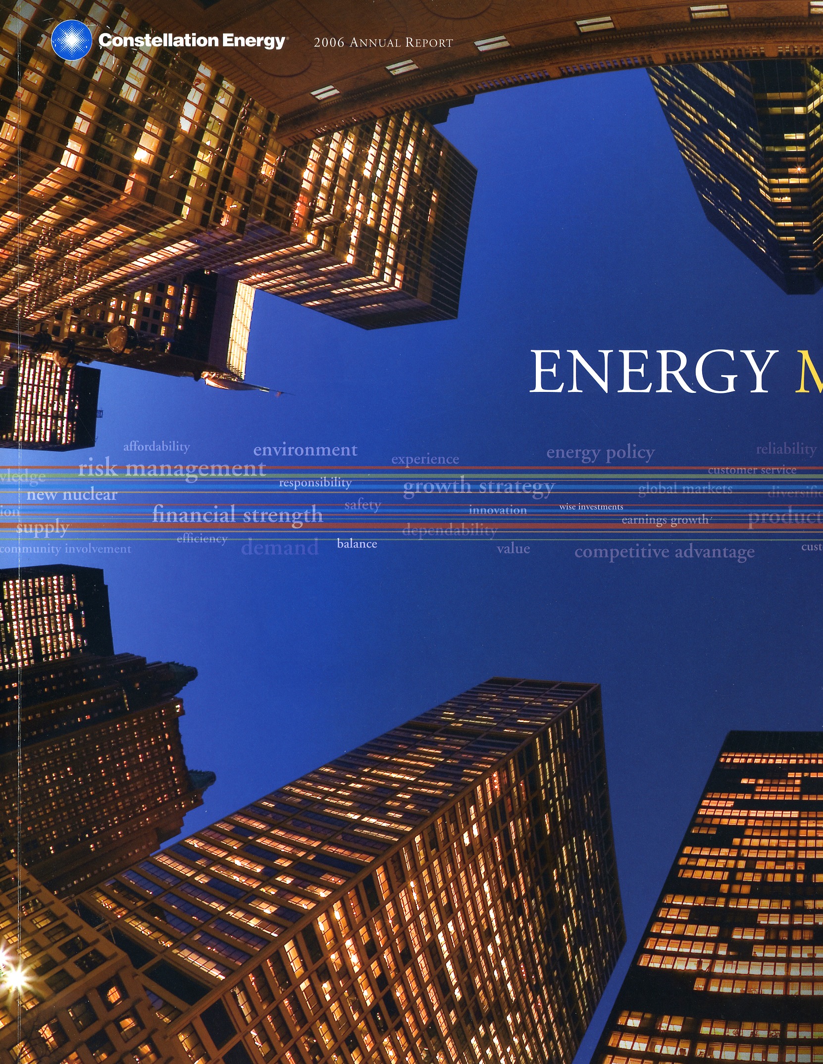 Download This Year's Entry Form Annual Report Highlights: View Competition Class Performance | Company/Agency Name: | Constellation Energy    | | Company/Agency Web Site: | www.constellation.com | | Company Ticker Symbol: | CEG | | Annual Revenue: | $1+ Billion | | Employee Base: | 1,000 - 10,000 Employees | | Core Industry: | Utilities - Multi/Water/Traders | Approximate Number of Pages: (Narrative/Financial Percent) | 168 (14.3%/85.7%) | | Notable Feature(s): | Fold-Out Cover, Glossary, Mailback / Business Reply Card | | Award Garnered: | Silver | | | | Judging Results | | First Impression: | | | Report Cover: | | | Letter to Shareholders: | | | Report Narrative: | | | Report Financials: | | | Creativity: | | | Message Clarity: | | | Information Accessibility: | | | Total Score: | |